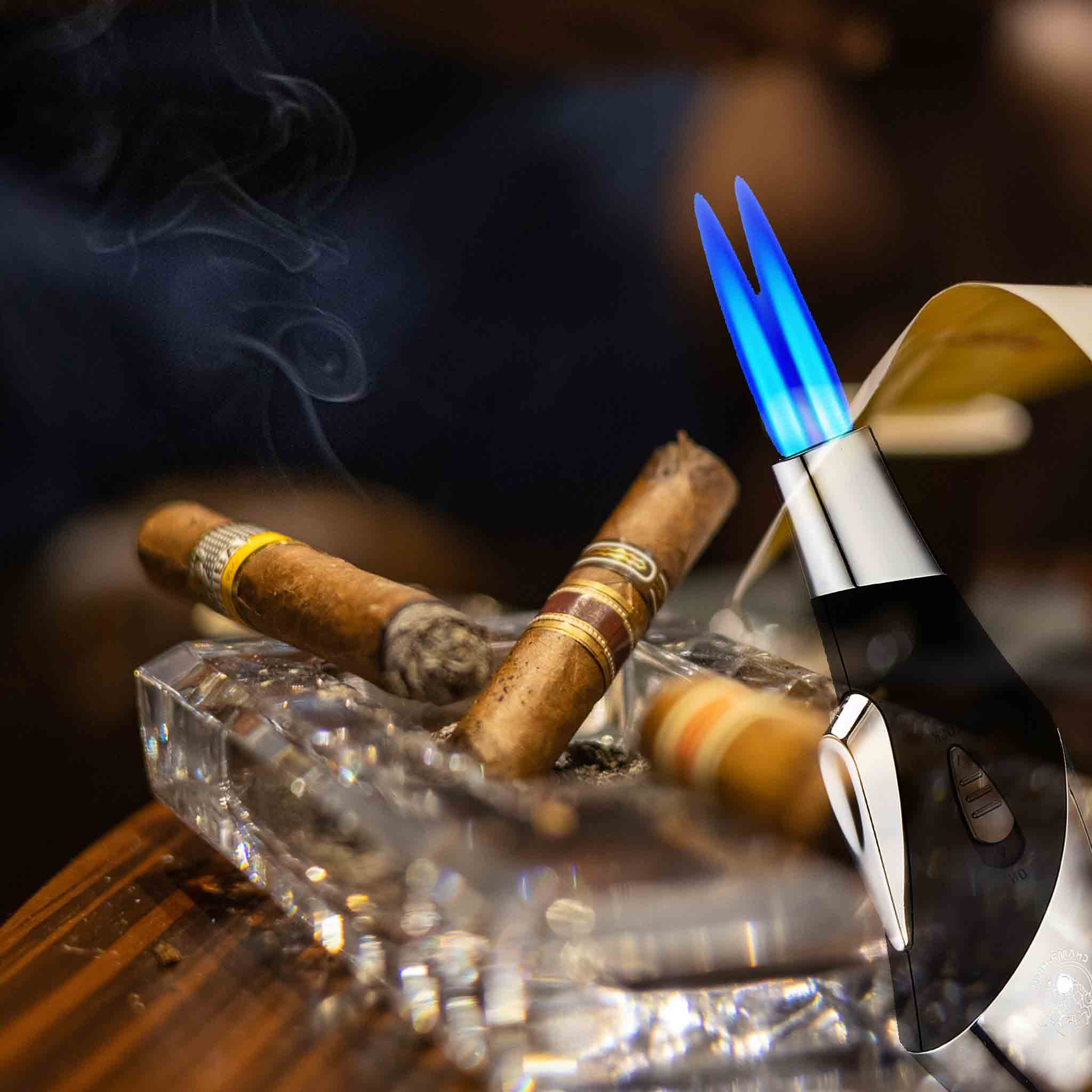 Un accendino per sigari è speciale perché garantisce una combustione uniforme del sigaro, permettendo al sapore e all'aroma di esprimersi al meglio. Questi bruciatori a gas forniscono anche la temperatura giusta per un'accensione perfetta e sono spesso progettati con attenzione all'estetica e allo stile, in linea con l'esperienza raffinata di fumare un sigaro.